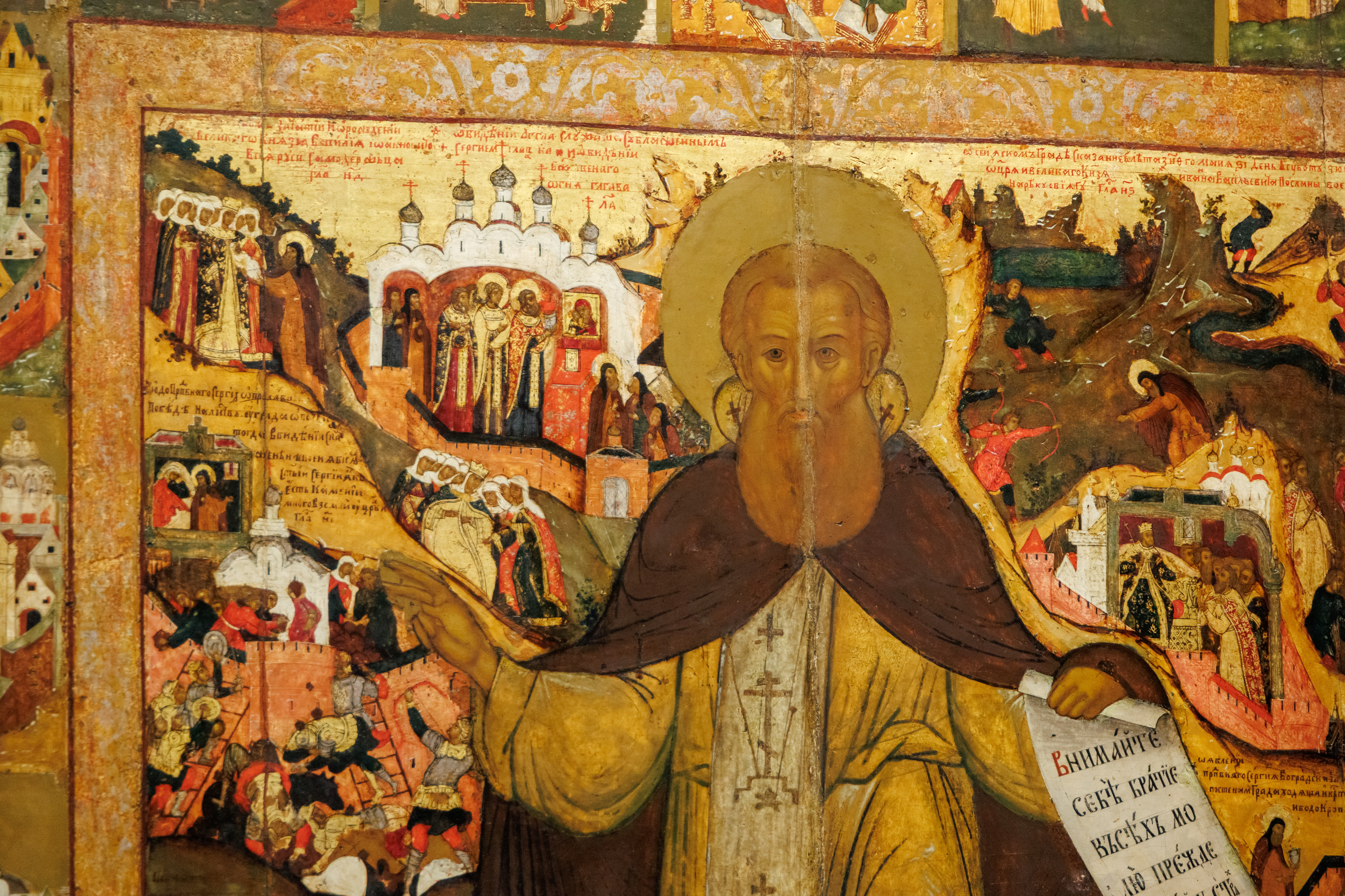 В экскурсию включены иконы, связанные с древнерусскими князьями, оказывавшими сопротивление врагам, а также уникальный для России памятник – икона «Сергий Радонежский с житием и Сказанием о Мамаевом побоище.